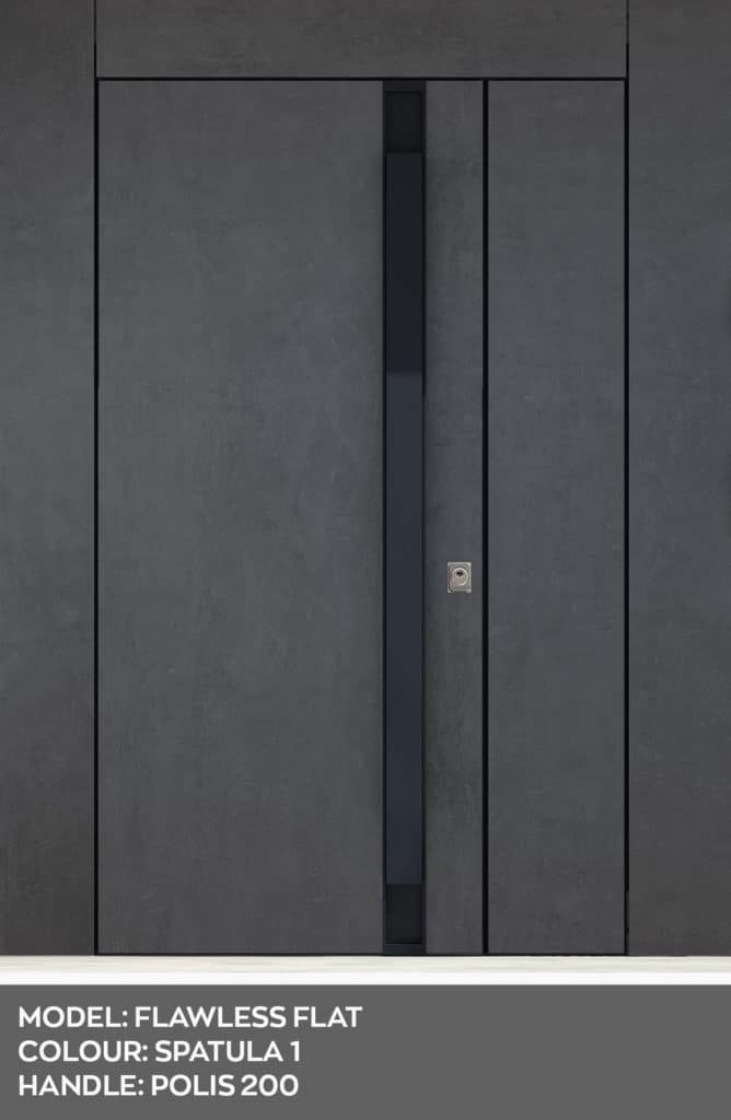 Με αφαιρετικό ύφος, η δίφυλλη πόρτα Flawless δημιουργεί μία ενιαία επιφάνεια ανάμεσα στα δύο φύλλα, κρατώντας απλές γραμμές.