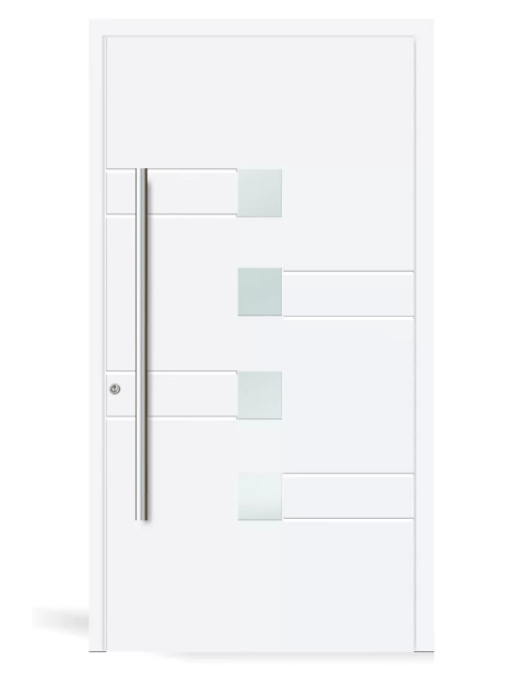 Η PLM23 παράγεται σε όλους τους χρωματισμούς ral. Εντυπωσίαζει σε λευκό χρώμα με τα 4 διακοσμητικά τζαμάκια, τα οποία συνοδεύονται από αντίστοιχες παράλληλες bevels αυλακώσεις. Διαθέτει κάθετη inox χειρολαβή. Αποτελεί μια δυναμική πρόταση για κάθε σπίτι.